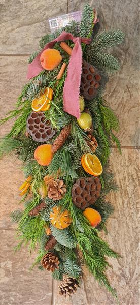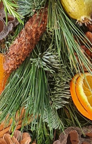Mixed foliage door hanging with traditional decorations. Collection or local delivery only