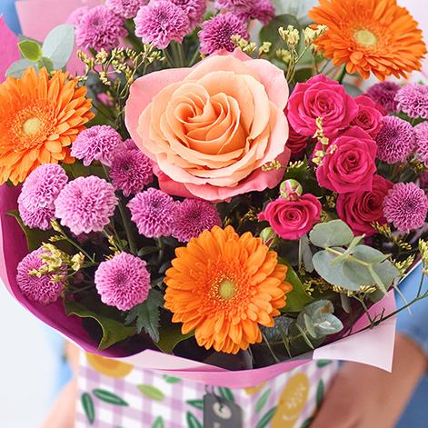 A sweet little gift box with a bright bouquet handcrafted by a florist inside.