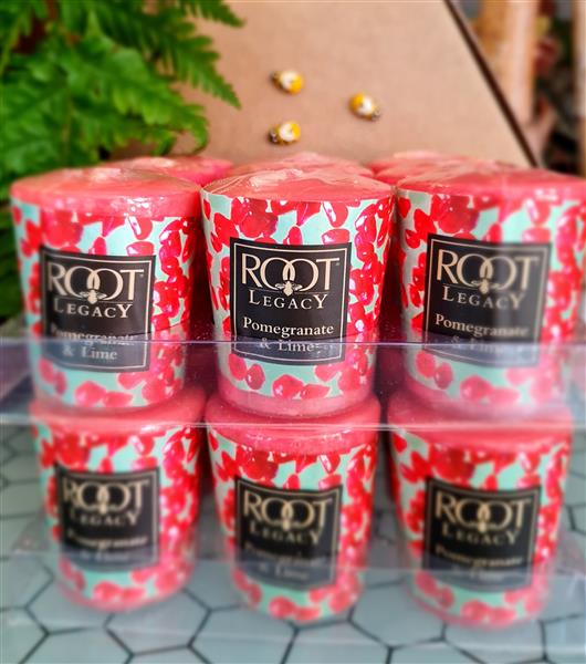Box of 18 long and clean burning scented votives(2.1oz 20hrs each) combination of all natural blend of beeswax, soy wax , fragranced using essential oils.