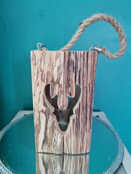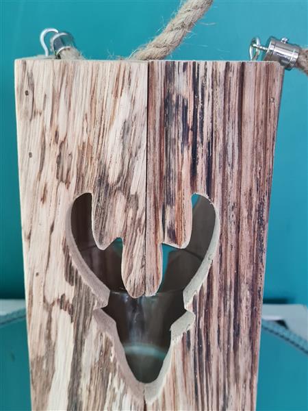 Wooden lantern with rope handle, glass insert and reindeer head cut out approx. 15cm COLLECTION OR LOCAL DELIVERY ONLY