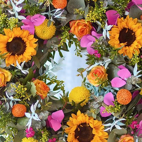Who said wreaths are just for Christmas? This fun and colourful wreath celebrates fresh flowers in summery vibes.